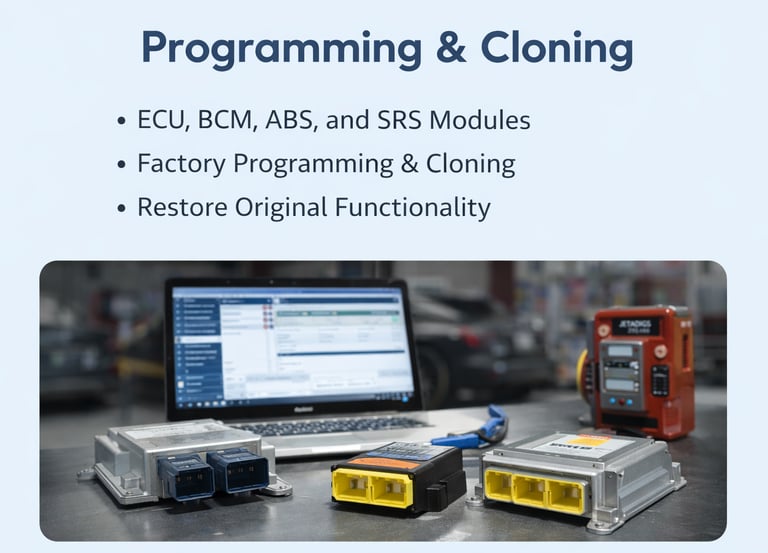 Expert ECU, BCM, ABS, and SRS programming and cloning services